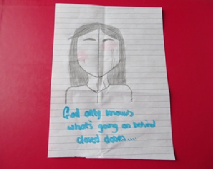 This young client was searching for identity? Who was she in the crazy world she inhabited? She draws herself as faceless, because until she knows and loves the girl inside, what chance has she of engaging with friends, school, community. Her hair is tidy, and that is her social profile. Everybody sees her as ‘tidy’ – tidy home, tidy student, tidy friend – all front and nothing within. Now, this quite amazing girl has what she likes to call ‘charisma’, - she breathes and lives a hunger to be different, someone with plans.